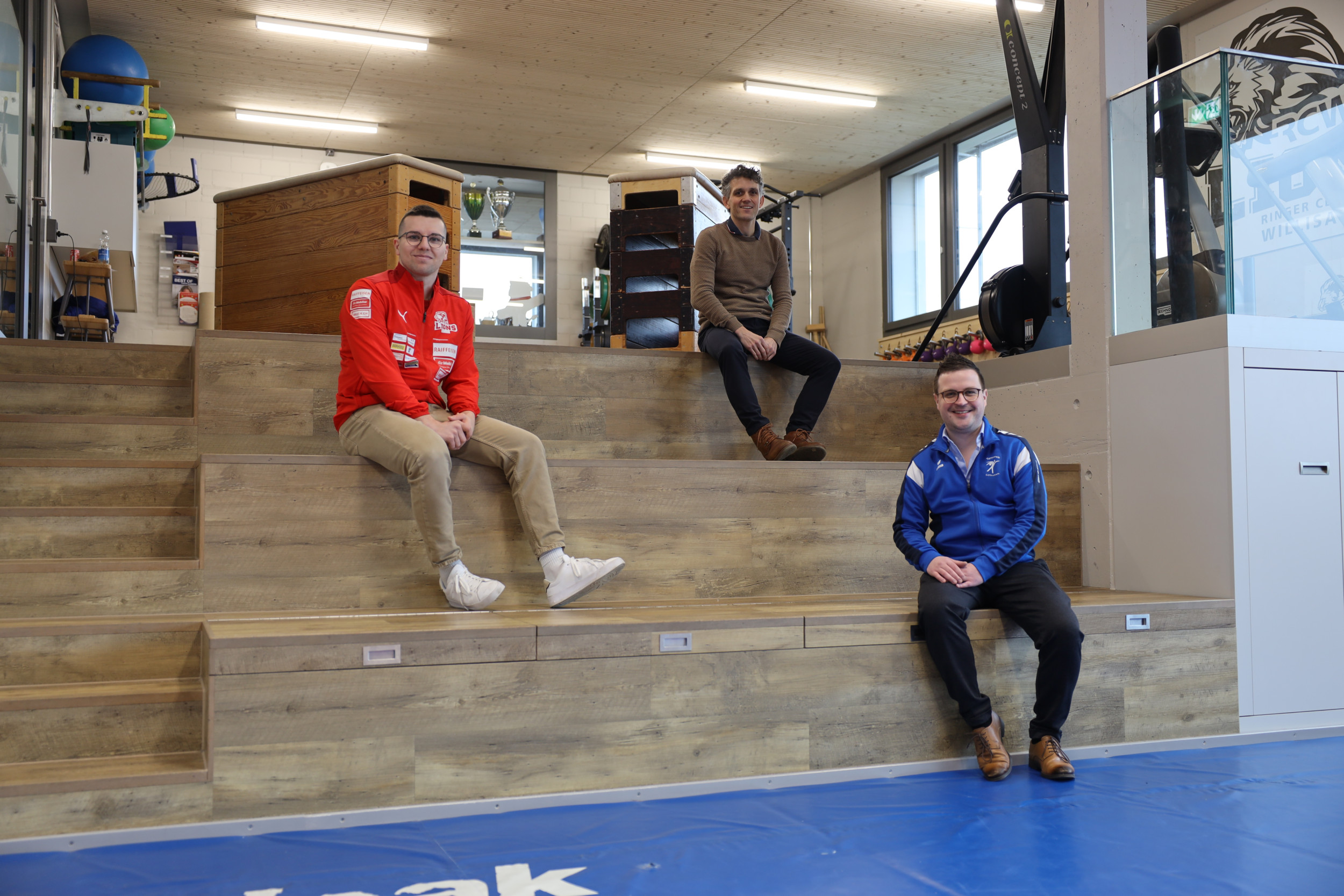 Sportredaktor Patrik Birrer (oben rechts) zusammen mit Florian Bernet (Sportchef RCW Lions Links) und Christian Hügi ( Präsident der Ringerabteilung beim TV Ufhusen, rechts unten).