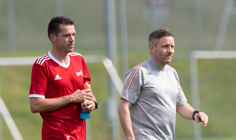 Roger Felber (44) und Reto Purtschert (50) amten seit Juni 2020 als Trainerduo der 1. Mannschaft des FC Schötz. Im kommenden Sommer nehmen die beiden damit die dritte Saison als sportlich Hauptverantwortliche bei den Wiggertalern in Angriff. Aktuell belegen sie mit ihrem Team in der 1. Liga, Gruppe 2, nach 16 von 26 Runden mit 21 Punkten den 9. Rang.