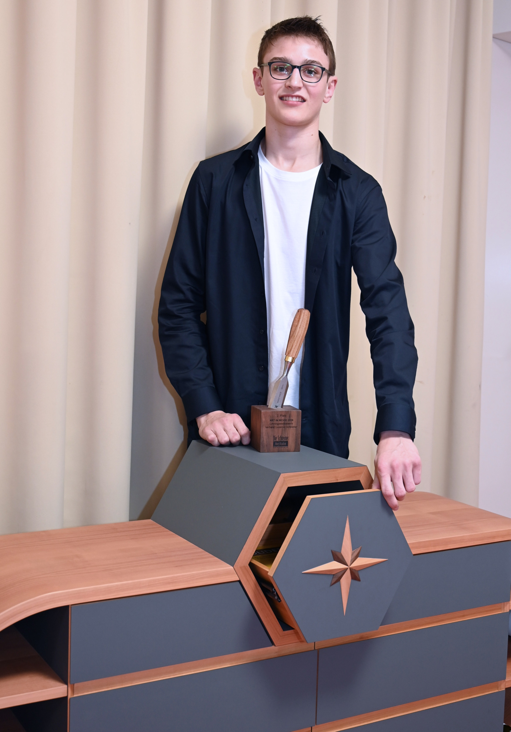 Die qualitativ hochstehende Schreinerarbeit steht im Zentrum Bewertung durch die Fachjury. Kriterien sind beispielsweise Massgenauigkeit, Verarbeitungsgüte, Oberflächenqualität, sowie Funktion und Eignung. Hinter Sheila Kunz aus Römerswil belegte der Hergiswiler Jonas Schumacher den zweiten Platz (Lehrbetrieb: Schreinerei Staffelbach GmbH, Hergiswil Willisau).