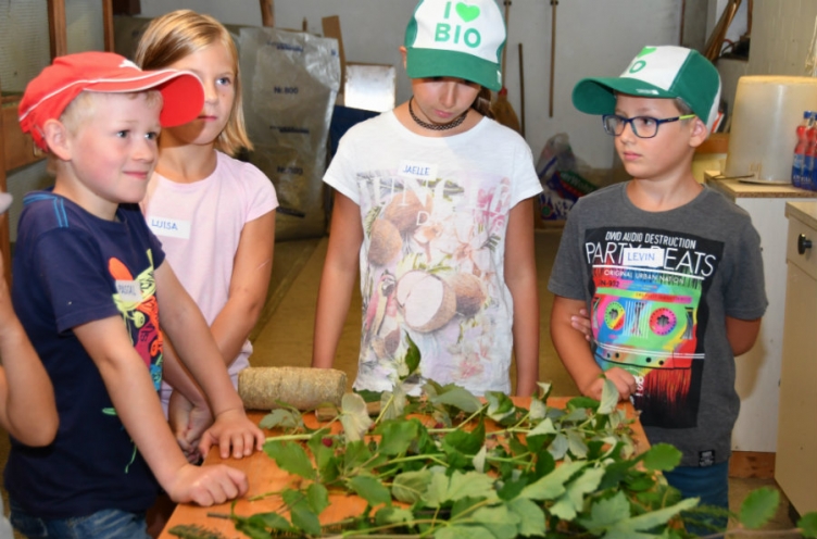 Die Kinder lernten verschiedene Pflanzen kennen, die den Kaninchen in massvoller Dosierung verabreicht werden können. Foto -i.