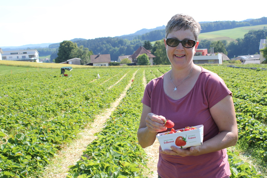 Gibt Esther Ruckstuhl grünes Licht, sehen ihre Kunden rot. Auf ihrem Hof können Erdbeeren selber gepflückt werden. Heuer in besonders geordneten Reihen.