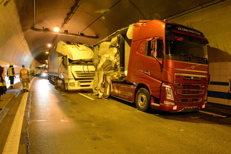 Massen-Crash mit vier Lastwagen im Tunnel Eich