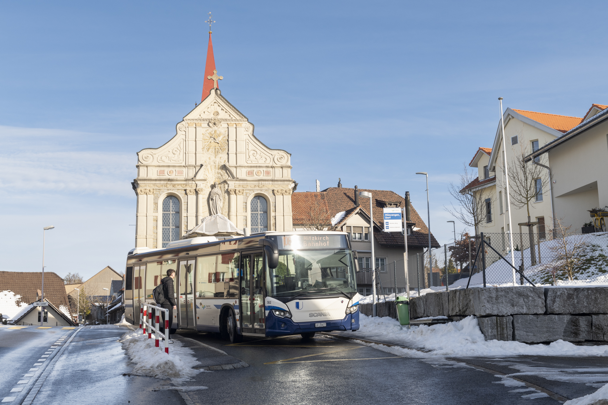 Mittels Petition wollen viele Müswanger erreichen, dass an der Bushaltestelle ein Dach angebracht wird. Derzeit müssen die Passagiere bei Regen und Unwettern unter dem Vordach der Kirch Schutz suchen.