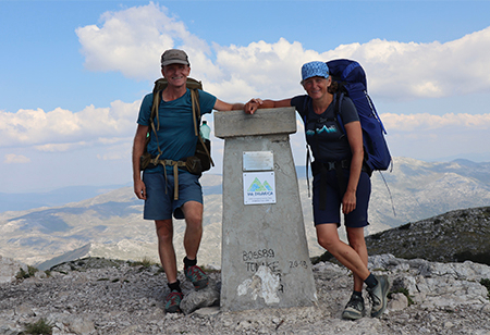 Am 31. Mai 2020 gehts los. «Endlich!» Das Duo startet mit seinen Velos von Huttwil Richtung Kirchberg, St. Gallen. Hier befindet sich das Möbellager, wo auch die Velos abgestellt werden sollen. Familie, Freunde und Bekannte laden sie unterwegs zum Abendessen und Übernachten ein. «So konnten wir uns in der Corona-zeit bei kleinen Treffen von langjährigen Weggefährten verabschieden.» Datum des erstes Wandertags: 12. Juni 2020. Zu Fuss gehts von Freunden zu Bekannten. Sie wandern während dreier Wochen quer durch die Ostschweiz und weiter nach Cazis. Denn hier, in der Alterssiedlung St. Martin, wohnt Sonja Stöcklis Mutter. Der letzte der 40 Besuche auf Schweizer Boden. Weiter gehts von der italienisch-schweizerischen Grenze durch das Vinschgau ins Südtirol. Von dort ziehen die «Vagabunden», wie sie sich selber nennen, entlang der österreichischen-italienischen Grenze auf dem «Südalpenweg» weiter und erreichen Slowenien. Sie folgen nun der «Via Alpina» und erreichen nach elf Wochen ihr erstes Zwischenziel: Razdrto, der Startpunkt der «Via Dinarica». Weiter gehts. Mutterseelen-alleine. Durch karge Landschaften, ausgedehnte Wälder, vorbei an kleinen Streusiedlungen.