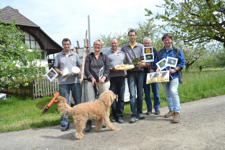 Mauerblümchen, Klee und Bohnen – ein Erlebnisrundgang zum Themenkreis «Stickstoff, Eiweiss und Biodiversität» steht im Zentrum des Biodiversitätstags Oberaargau, der am 22. Mai in Melchnau stattfindet. Mit dabei: Vereine aus unserer Leserregion. Unser Bild: Ein Teil des OK posiert vor dem „Molkebad“, in dem man auf dem „Bodmen“ in Melchnau baden kann (Badekleid, Tuch, etc. bitte selber mitbringen). Weitere Infos in der Printausgabe vom Freitag.