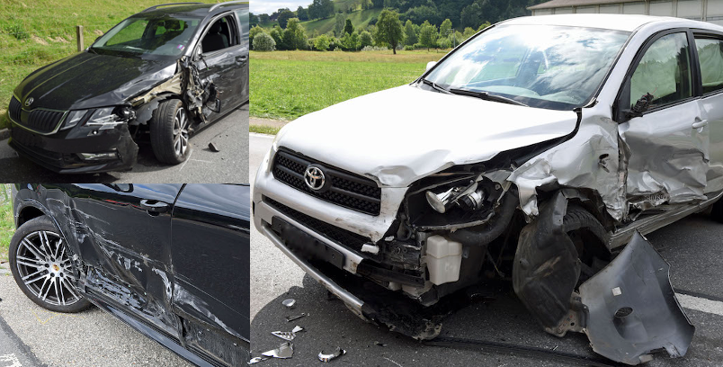 Unfall mit drei Autos: acht Personen zur Kontrolle im Spital