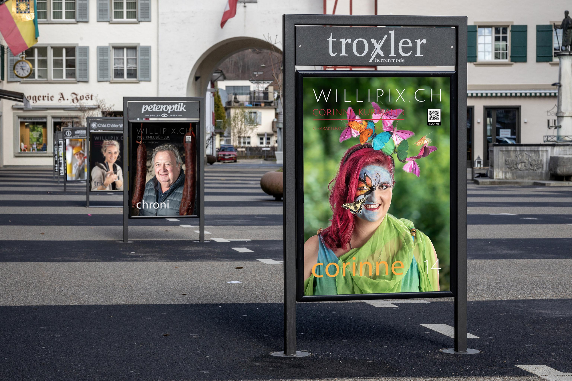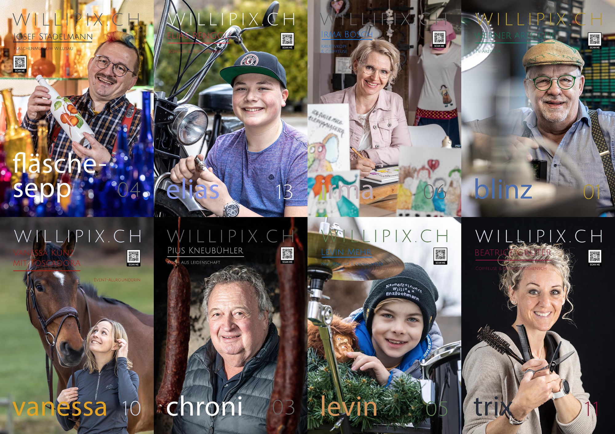Doch Studhalters lassen den Kopf nicht hängen. Stattdessen nutzen sie die frei gewordene Zeit für eine Herzensangelegenheit: Sie lancieren das Fotoprojekt Willipix.ch. Die Idee der zwei Fotografen: «Wir wollen die unvermummte Lebensfreude der Willisauerinnen und Willisauer mit der Kamera festhalten.» Die Porträts lachender und fröhlicher Menschen sollen dann im Städtli ausgestellt werden – «die Kundenstopper in der Hauptgasse eignen sich perfekt dafür». Auf den grossformatigen Plakaten ist ein QR-Code platziert, der auf die Website www.willipix.ch verweist.