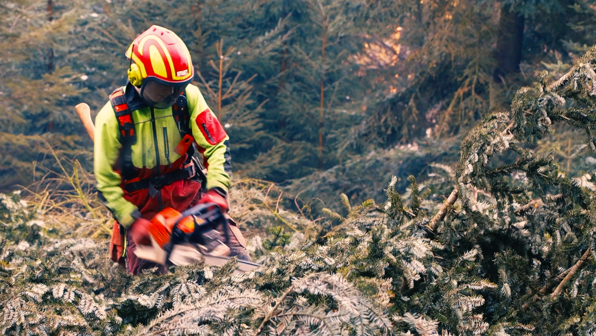 Forstwart bei der Arbeit.