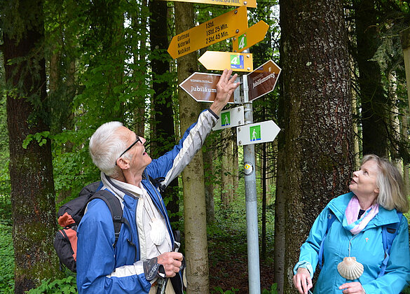 Damit Pilger und Wanderer stets den Weg finden: Franz Imhof und Judith Bucher-Steger sind für den Abschnitt des Jakobsweges im Hinterland… -