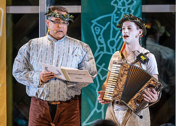 Schnitzelbänkler schwangen oben aus
